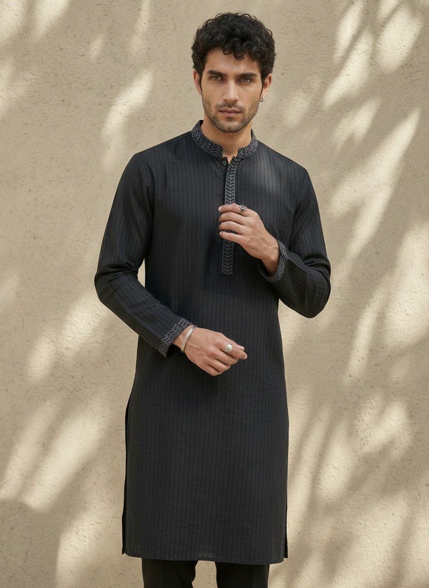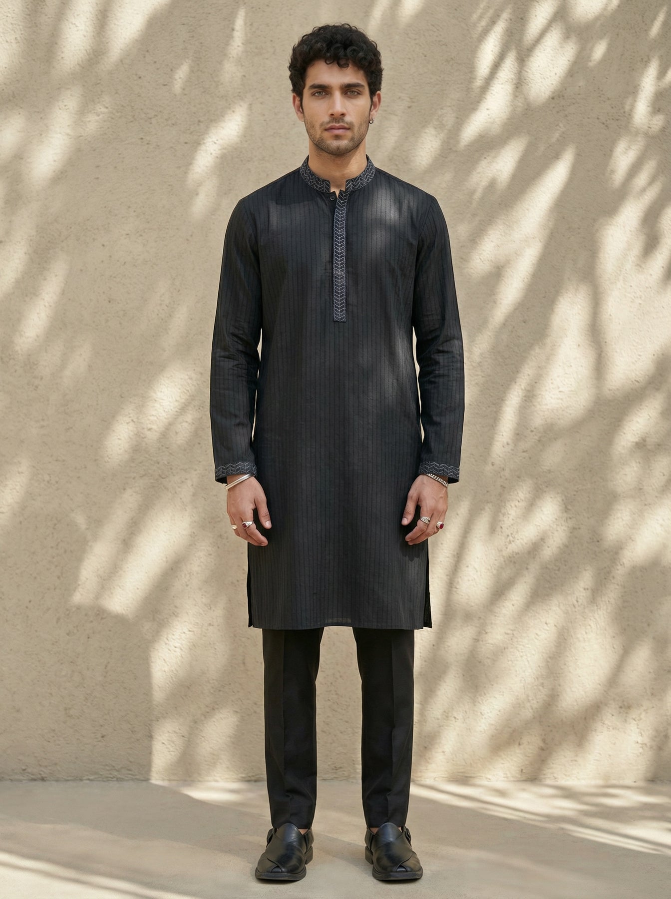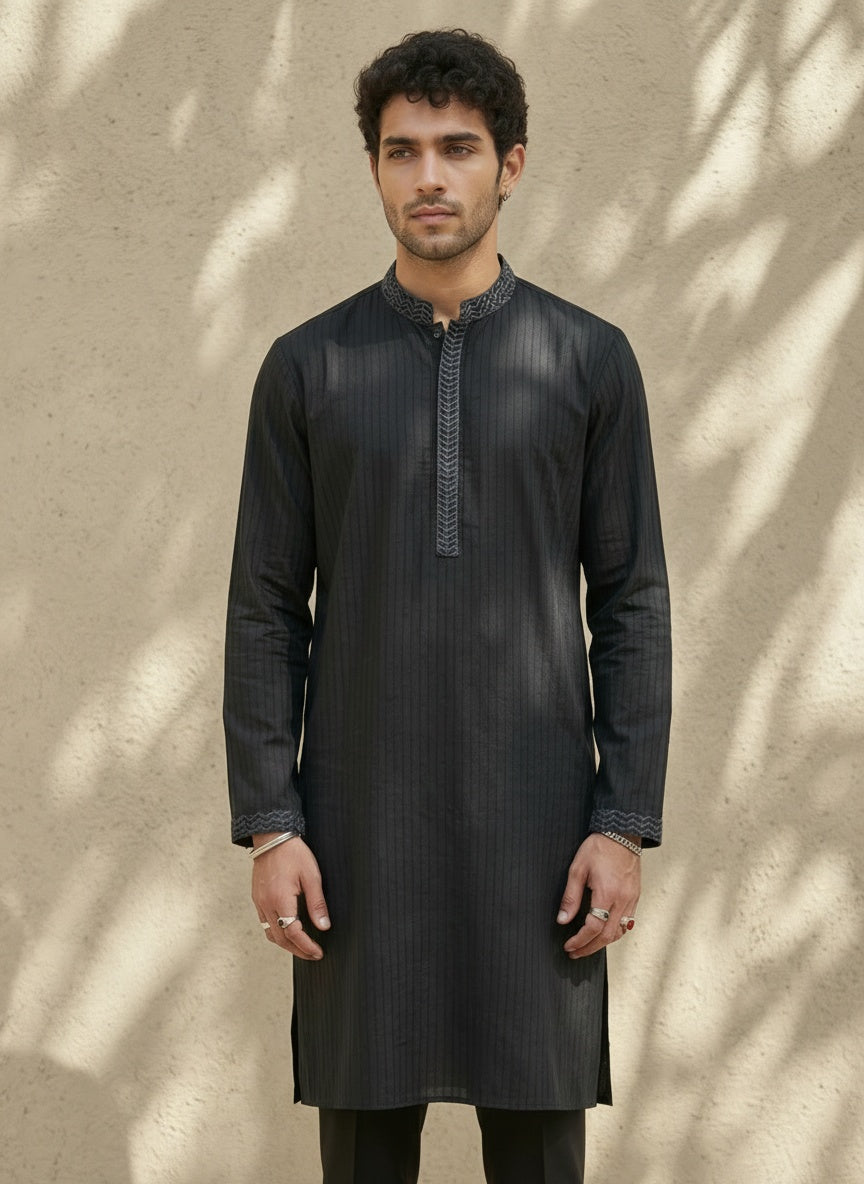 Note: This kurta includes black straight pants. Can be requested with a churidar if required
